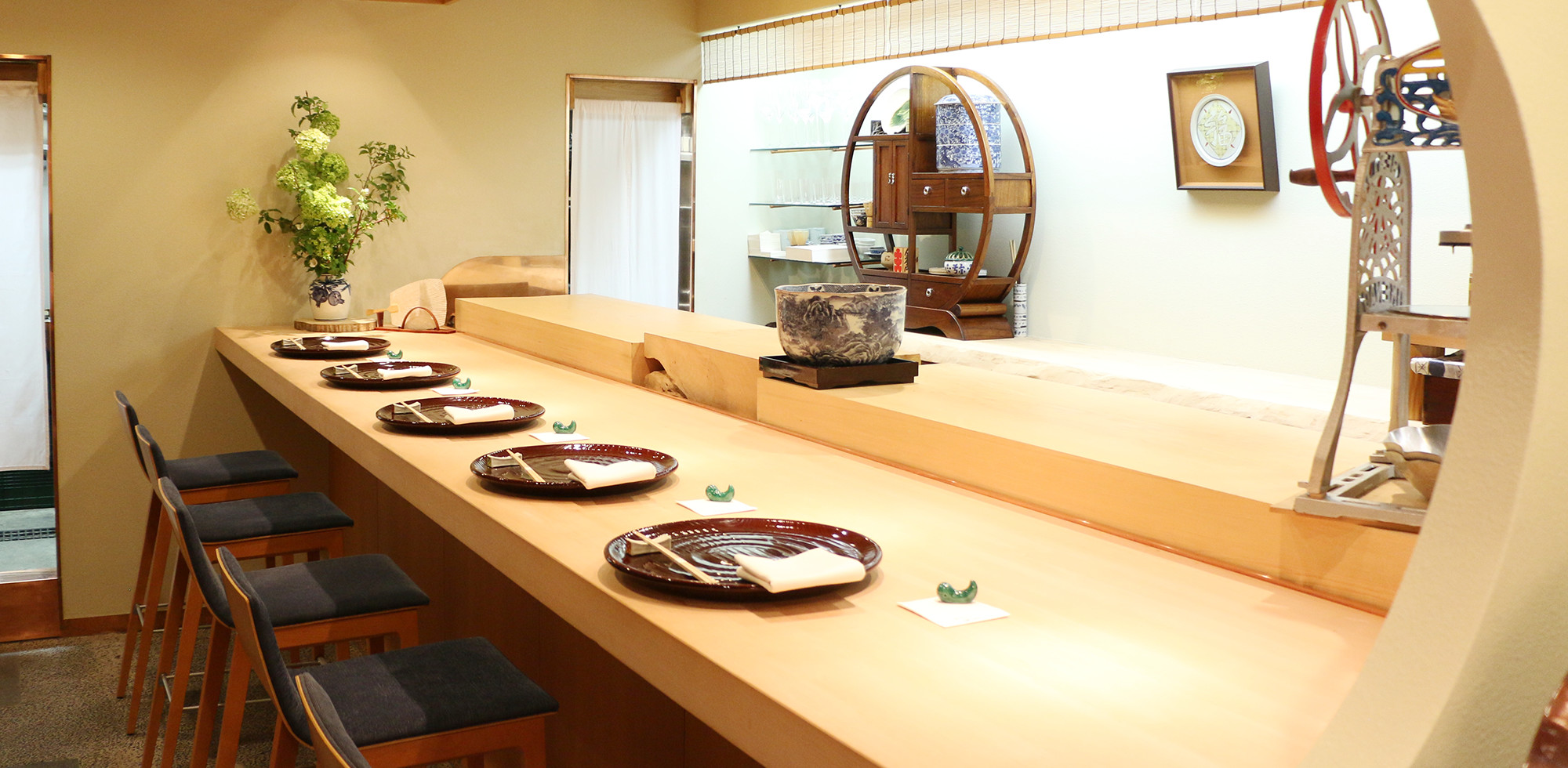 すべてはお客様に喜んでもらうため、素材の持ち味を余すことなく表現した料理を、静謐なカウンターでお楽しみください。